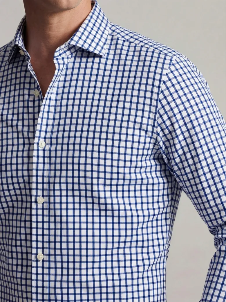 Navy blue checked twill shirt