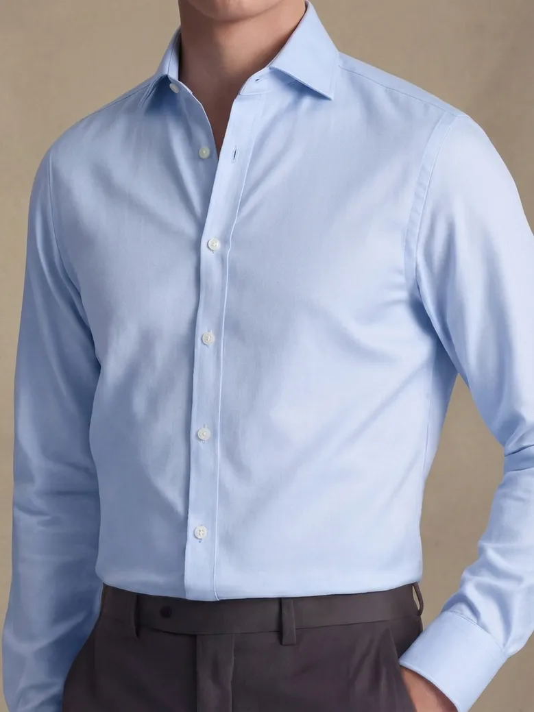 Plain sky blue wrinkle-free twill shirt